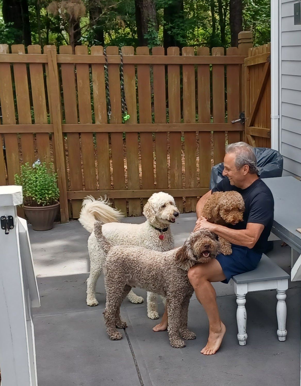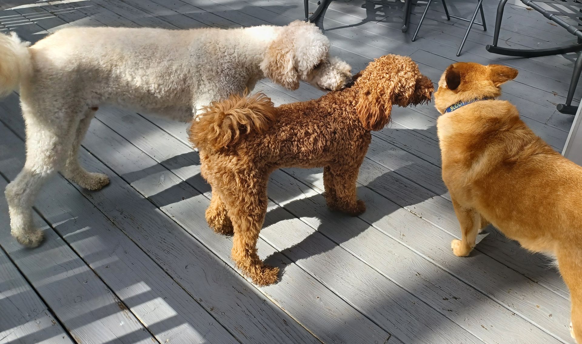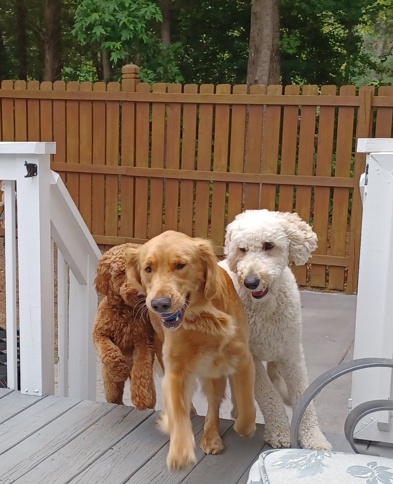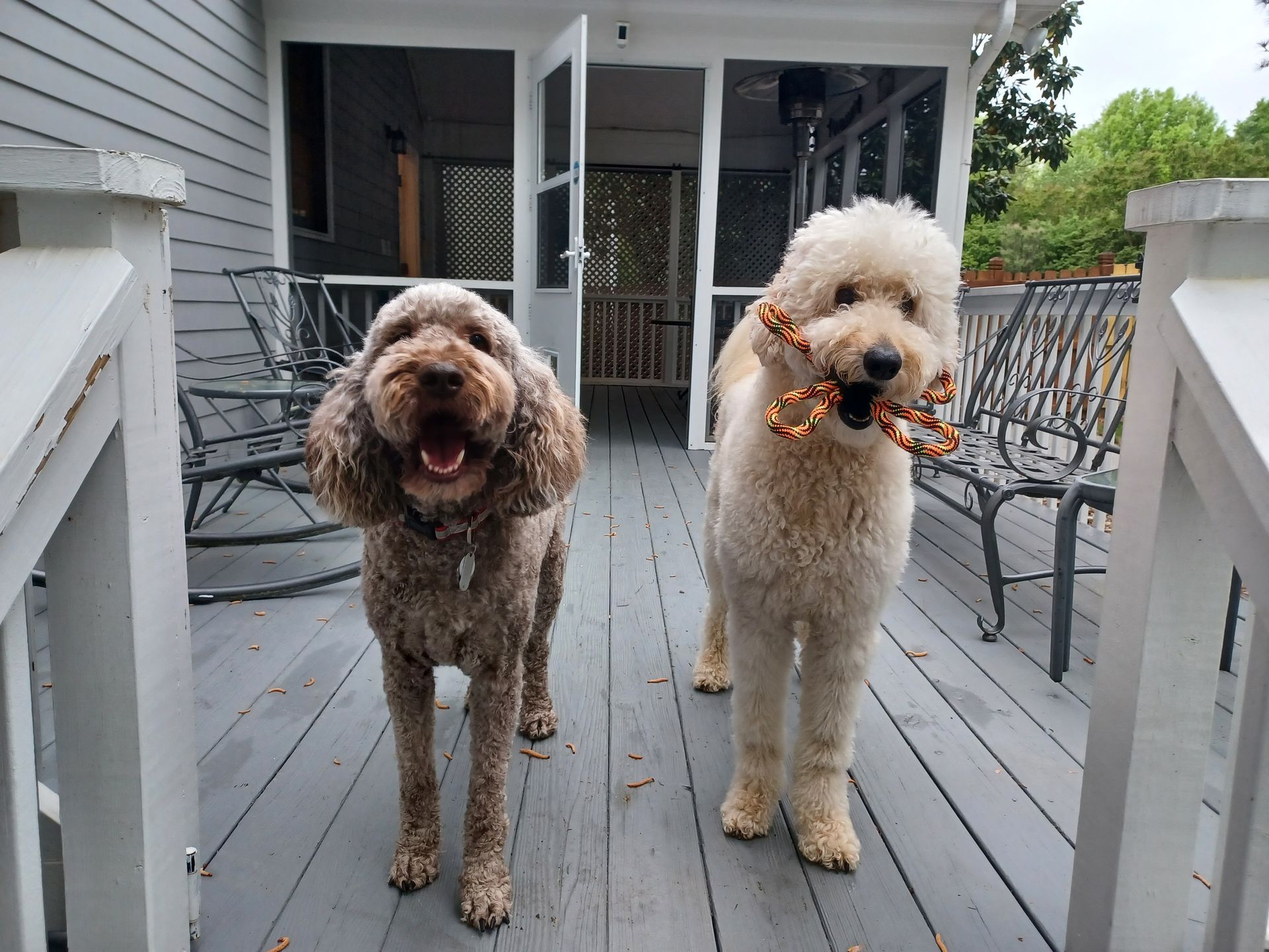 Playtime with other pooches in our secure, fully fenced backyard play area. Daily walks around our community and local greenways. During summer, we provide backyard "pool time" for our water-dog pooches.